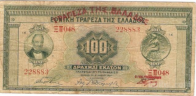 Prodam ZELO REDEK BANKOVEC 100 DRACHMAI P-91a.1 (GRČIJA ) 1927.F/VF.Kvaliteta.