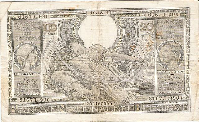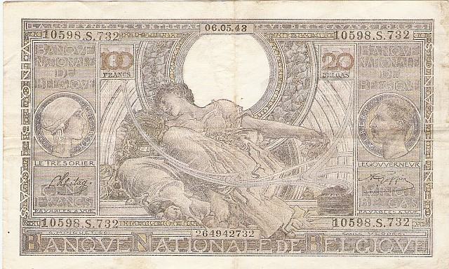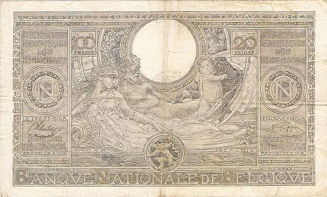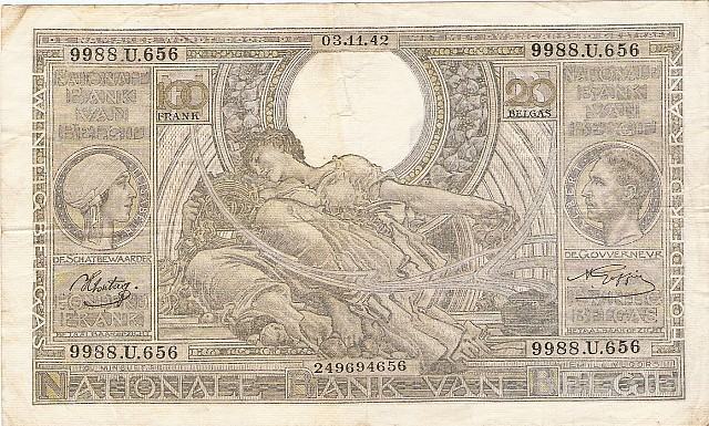 Prodam RAZLIČNE VELIKE bankovce 100 FRANCS 20 BELGAS P-107a.15-1941, P-112a.3-1942 IN P-107a.21-1943 (BELGIJA) VF Kvaliteta - CEMA JE ZA 1 BANKOVEC.