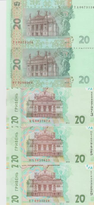BANK. 20-2013,2016,2018,2021 HRYNI P120d,P120e,P125a,PA (UKRAJINA) UNC