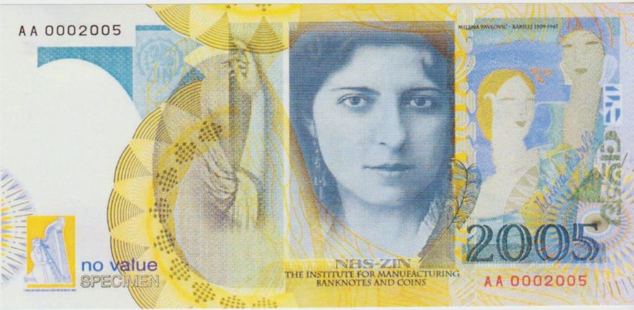 Prodam ZANIMIV SPOMINSKI BANKOVEC ZIN 2005 SPECIMEN"svetovno znana slikarka MILENA PAVLOVIĆ BARILI-50 let tragične nesreče... privatna izdaja - replika" ( SRBIJA) 2005.UNC kvaliteta.