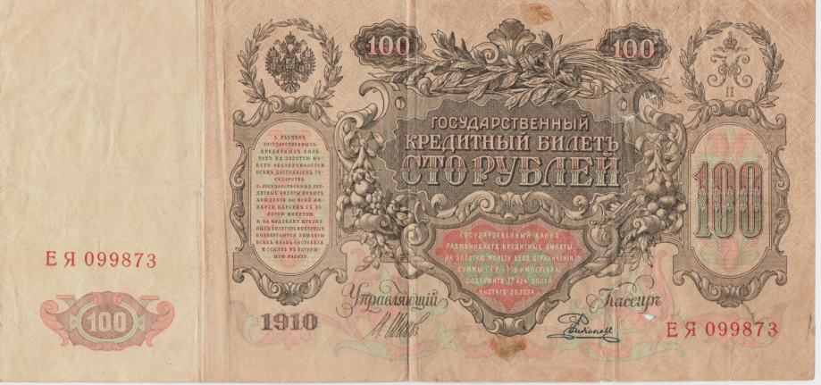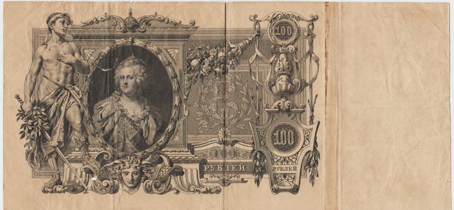 BANK.100 RUBLEI P13b.1.9 (258 x 122 mm) (CARSKA RUSIJA)1912(1910) F/VF