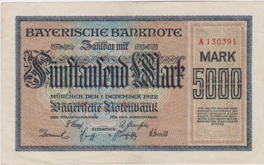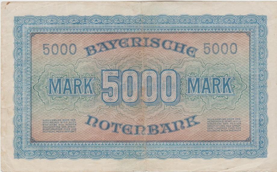 BANK.5000 MARK M4-3020.3a(BAVARIJA BAYERISCHE RAICH NEMČIJA)1922.VF/XF