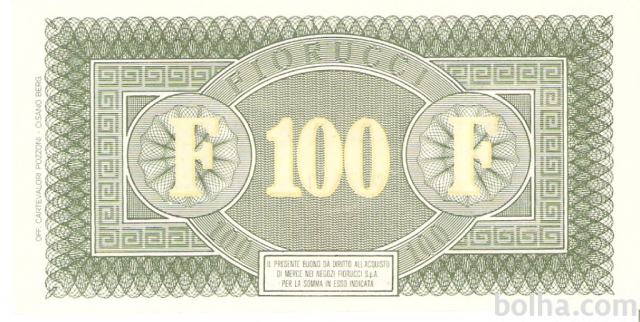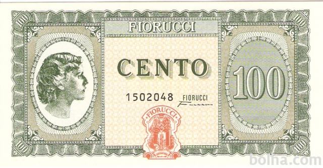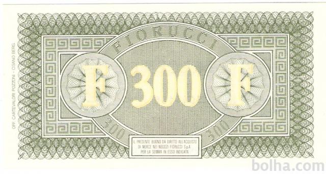 Prodam bankovec BON 100,300,500 LIRE "FIORUCCI" (ITALIJA )1977,UNC. CENA JE ZA 1 BANKOVEC.