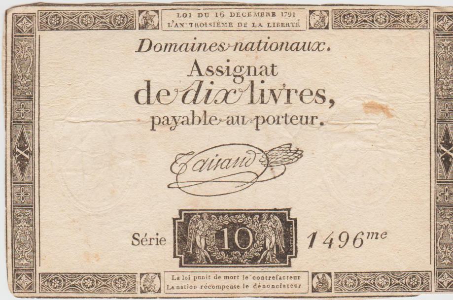 BANK.F.REVOLUCIJE 10 SOUS A51 V.žig:RFser.1611 (FRANCIJA)16.12.1791.VF