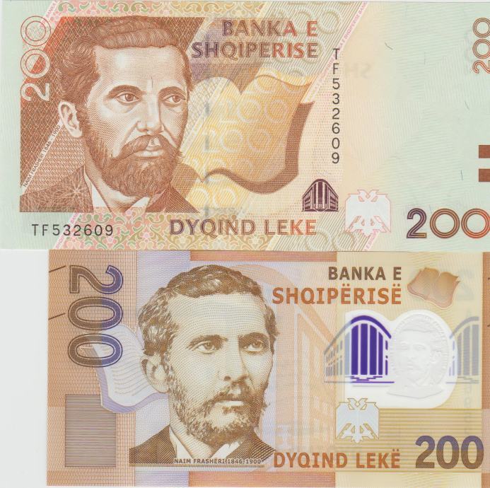 Prodam REDEK BANKOVCE 200 LEKE P67a-2001 CENA € 8,50 IN 200 LEKE P76a-2017 CENA € 6,50 (ALBANIJA) UNC kvalitete.