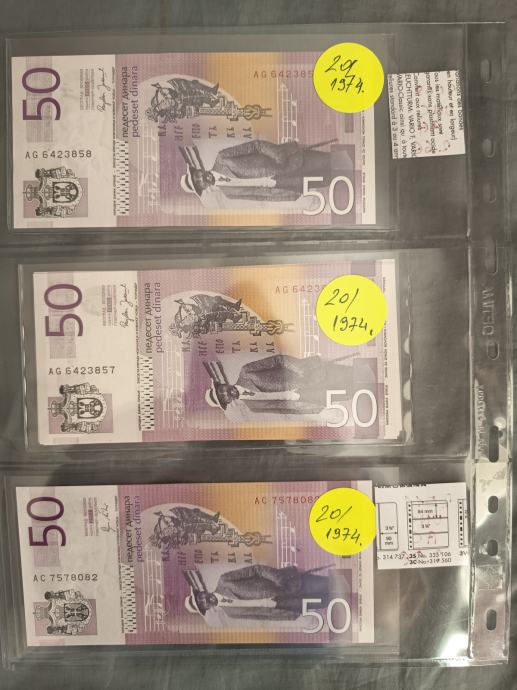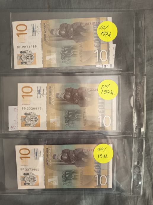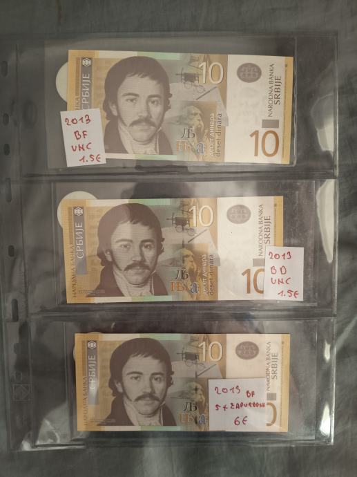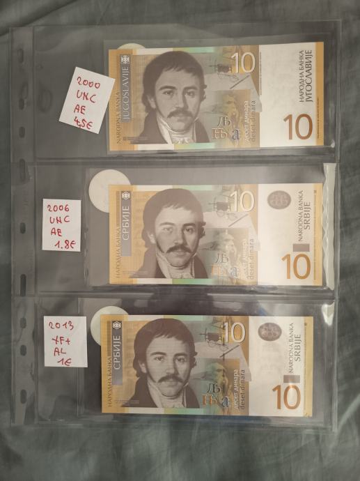 Prodam UNC bankovce Srbija, različni letniki 10 in 50 dinarjev.