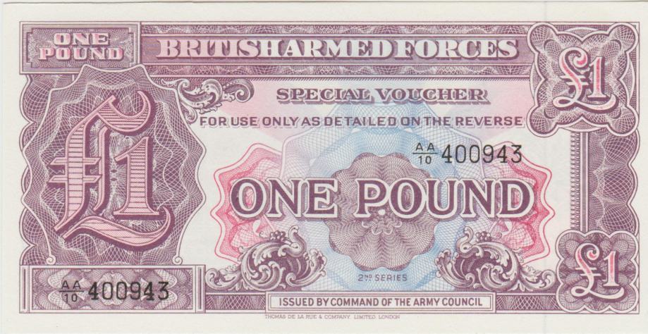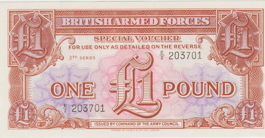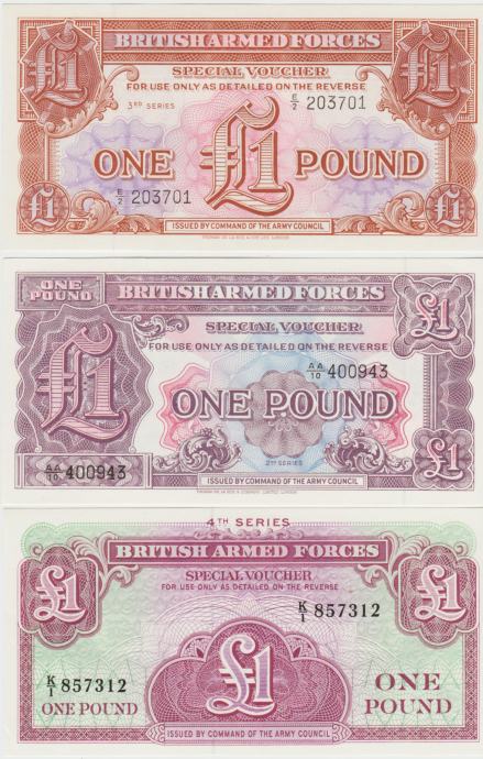 Prodam bankovec 1 POUND P-M29-1956 CENA € 3,90 -zgornji,, 1 POUND P-M22b-1961(1948) CENA € 3,90 -srednji,,IN 1 POUND P-M36a-1962 CENA € 3,90 -spodnji,, (ANGLIJA BRITANSKE OBOROŽENE SILE - BRITISH ARMED FORCES)1972 - ZA POTREBE ANGLEŠKE VOJSKE ..., nov, UNC kvaliteta - CENA JE ZA 1 BANKOVEC