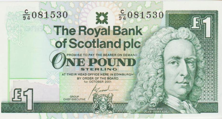 Prodam REDEK BANKOVEC 1 POUND P-351e (ŠKOTSKA ANGLIJA) 2001.UNC