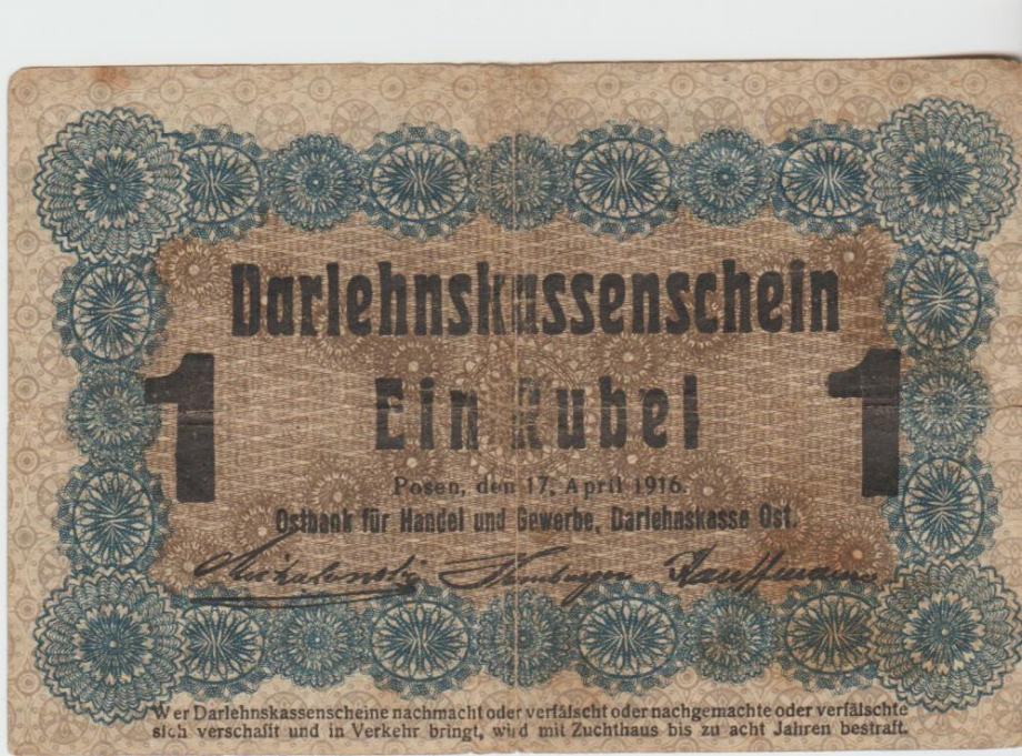 Prodam REDEK ZGODOVINSKI BANKOVEC 1 RUBEL P-R122c NEMŠKE OKUPIRANE DEŽELE WWI za POLJSKO, LITVO (NACISTIČNI NEMŠKI REICH NEMČIJA) 1916. VF kvaliteta.