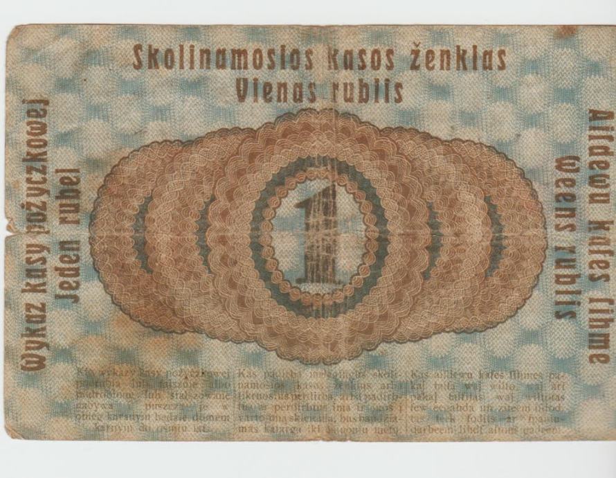 BANKOVEC 1 RUBEL PR122c-NEM.OKUP.DEŽELE WWI (NEMČIJA LITVA)1916.VF