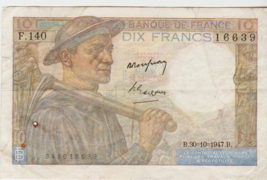 PRODAM REDEK BANKOVEC 10 FRANCS P-99c.4-1944 IN 10 FRANCS P-99f.1-1947 (FRANCIJA) VF kvaliteta.