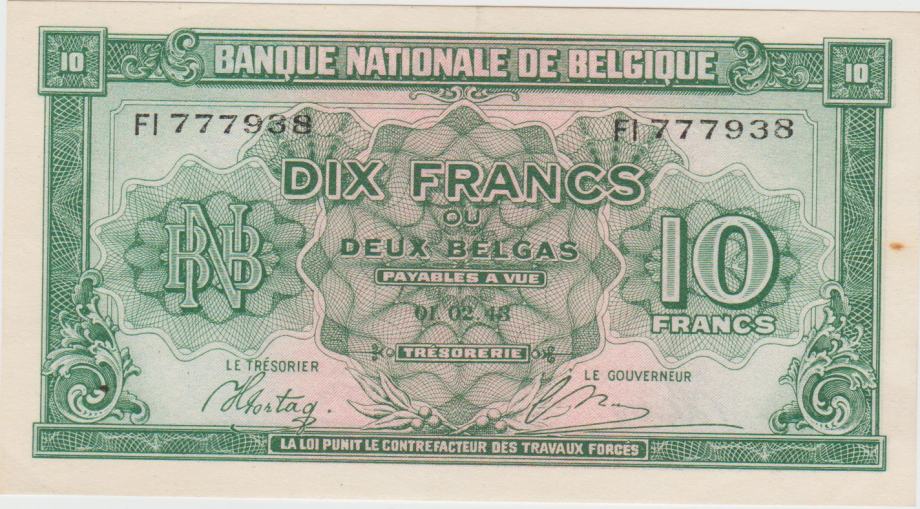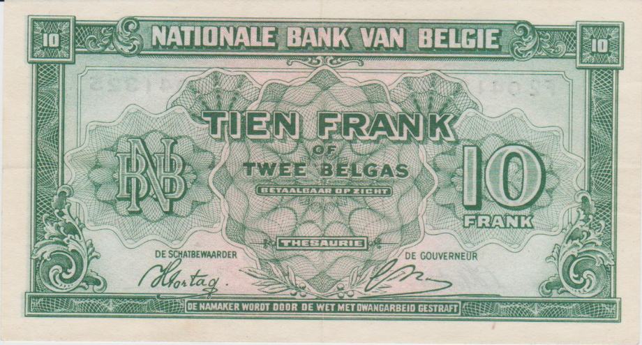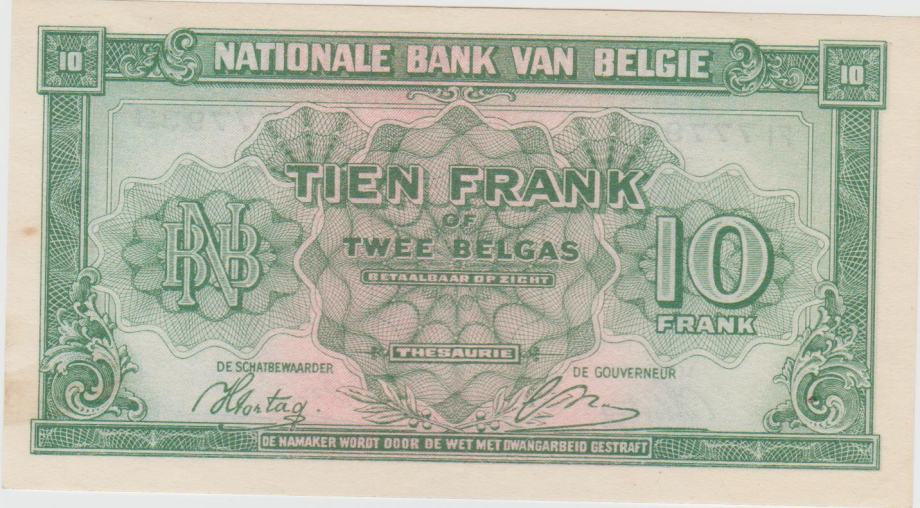 Prodam REDEK bankovec 10 FRANCS P122 ( BELGIJA) 1943.XF/ XF++Kvaliteta.CENA JE ZA 1 BANKOVEC.