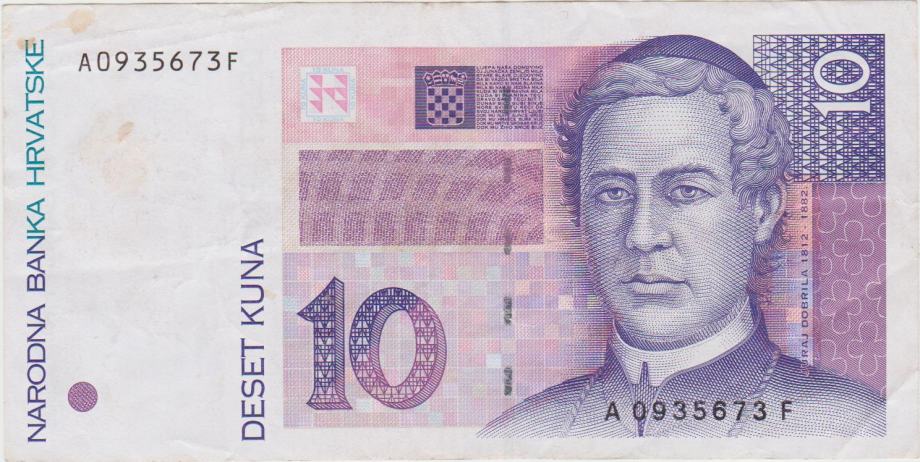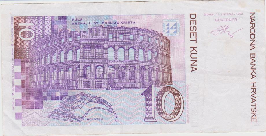 Prodam IZREDNO REDEK BANKOVEC 10 KUNA P29a -VIJOLČAST (HRVAŠKA) 31.10.1993.VF kvaliteta.