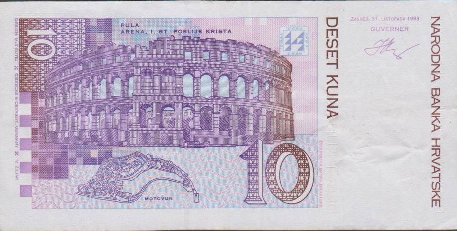 Prodam IZREDNO REDEK BANKOVEC 10 KUNA P29a -VIJOLČAST (HRVAŠKA) 31.10.1993.VF kvaliteta.