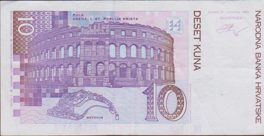 Prodam IZREDNO REDEK BANKOVEC 10 KUNA P29a -VIJOLČAST (HRVAŠKA) 31.10.1993.VF/XF kvaliteta.