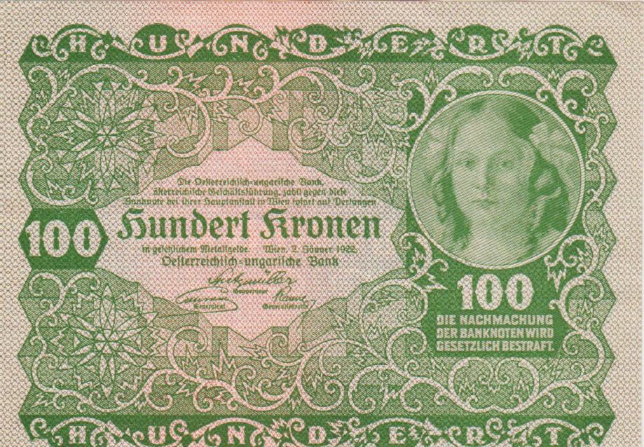 Prodam bankovec 100 KRONE P77 CENA € 7,90 (AVSTRIJA) 1922,aUNC/UNC