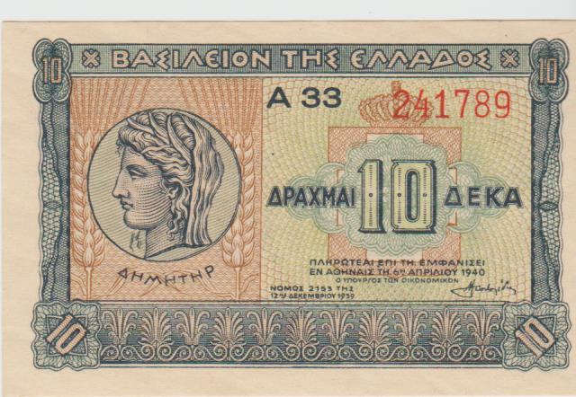 Prodam BANKOVEC 10 DRACHMAI P314 CENA € 5.9 IN 20 DRACHMAI P315 CENA € 8,90 (GRČIJA )1940.UNC Kvaliteta.