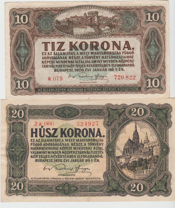 Prodam REDEK BANKOVEC 10 KORONA P-60 CENA € 8,90 IN 20 KORONA P-61 CENA € 9,90 (MADŽARSKA) 1920.XF.Kvaliteta. Zadaj napisani zneski v vseh jezikih narodov razpadle Avstroogrske ...