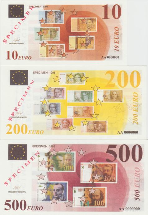 Prodam TESTNII BANKOVEC 10,200,500 EURO SPECIMEN 1998 -PROMOCIJA ZA 1.1.2002 -izdano V Franciji (FRANCIJA) 1989.UNC kvalitete .CENA JE ZA 1 BANKOVEC.