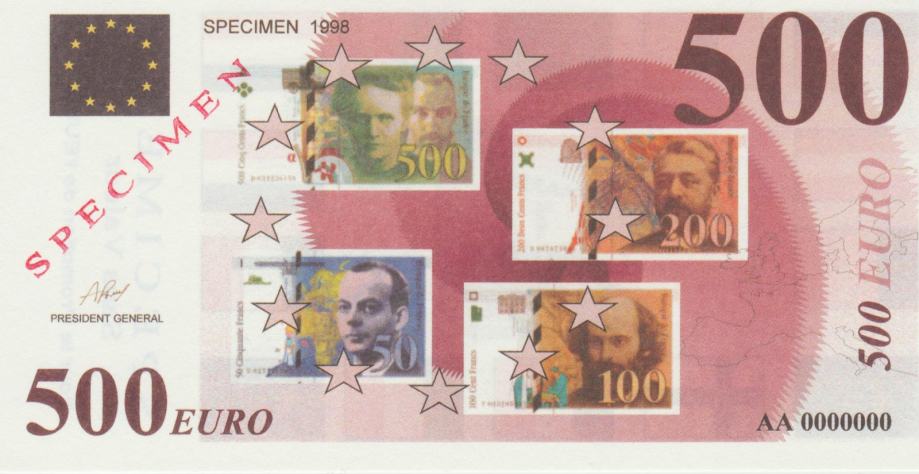 BANKOVEC 10,200,500 EURO SPECIMEN 1998-za1.1.2002 (FRANCIJA) 1989.UNC