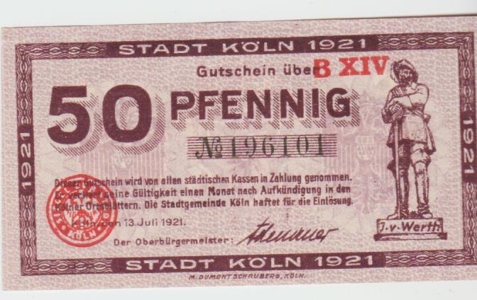 Prodam redek LOKALNI bankovec ŠE 10,50 PFENNIG (NEMČIJA mesto COLN KELN- NEMŠKI REIH) 1921, UNC Kvaliteta. Izdan PO 1. svetovnI vojnI, po razpadu Nemško - Avstroogrske monarhije..CENA JE ZA 1 BANKOVEC.
