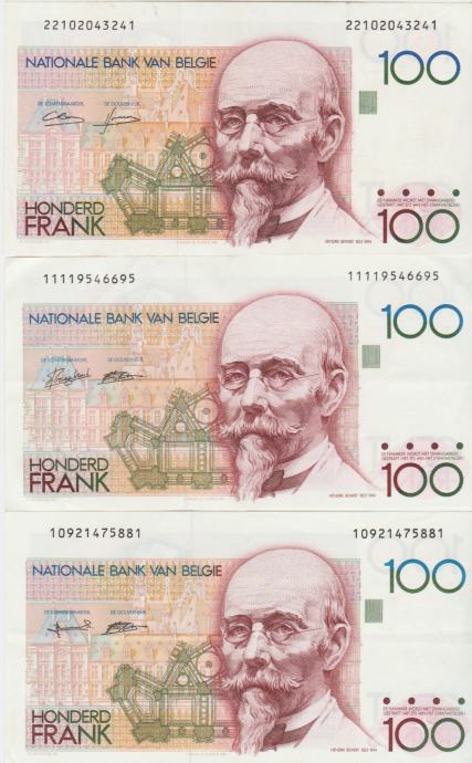 BANKOVEC še 100-1984,1989 FRANCS P142a.4,P142a6,P142a7 (BELGIJA) XF++