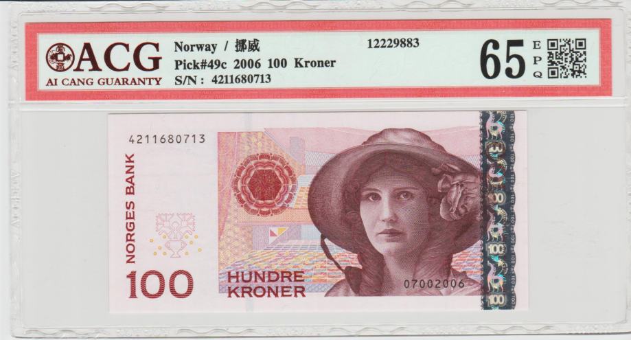 Prodam BANKOVEC 100 KRONER P49c (NORVEŠKA) 2006.UNC Kvaliteta-ocena garancija ACG-65.