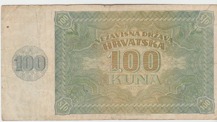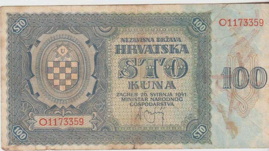 Prodam REDEK bankovec 100 KUNA P2 (NDH HRVAŠKA) 1941,VF Kvaliteta.