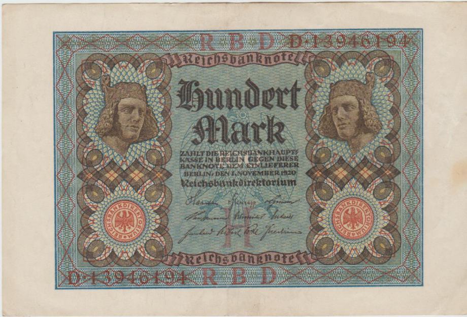 Prodam BANKOVEC 100 MARK P-69b, "H - 8 ŠTEVILK" (NEMŠKI REIH NEMČIJA) 1920. XF Kvaliteta.
