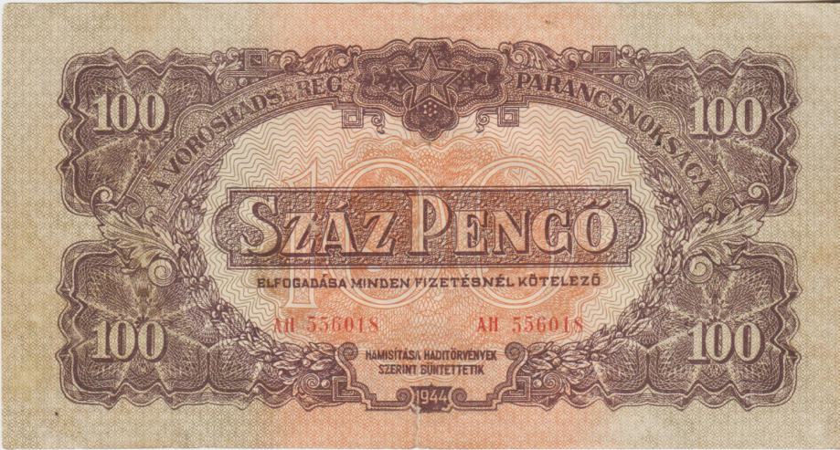 BANKOVEC 100 PENGO P-M8.1 -RUSKA OKUPACIJA (MADŽARSKA) 1944.VF/XF