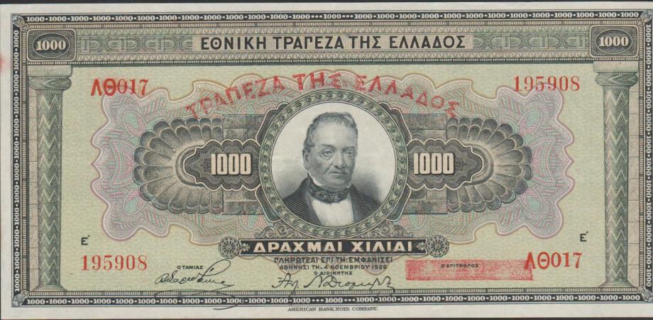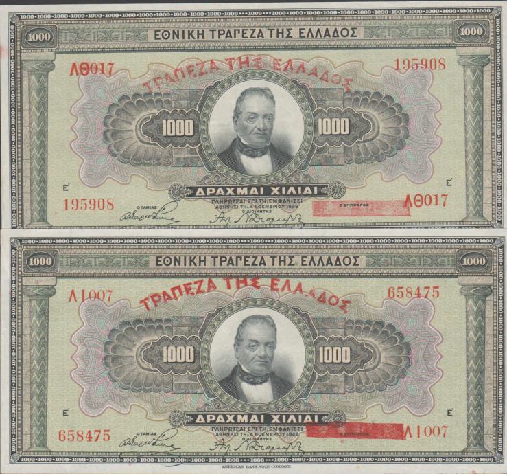 Prodam VELIK BANKOVEC 1.000 DRACHMAI P-100b.-PRETISK (GRČIJA ) 4.11.1926. aUNC Kvaliteta. CENA JE ZA 1 BANKOVEC.
