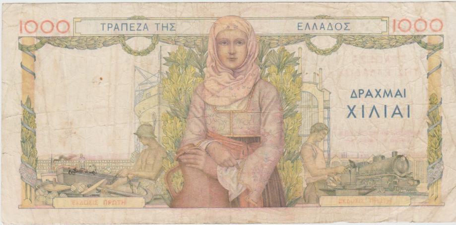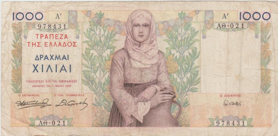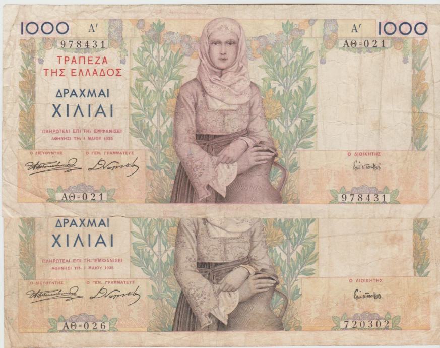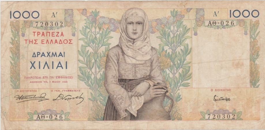 Prodam ZELO REDEK VELIK BANKOVEC 1000 DRACHMAI P-106a (GRČIJA ) 1935.VF Kvaliteta.CENA JE ZA 1 BANKOVEC.