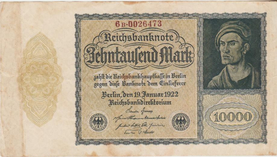 BANKOVEC 10000 MARK P72a4,P72a.3-7,6 št.(R. NEMČIJA)1922.VF,XF++/aUNC