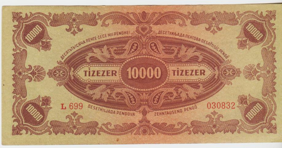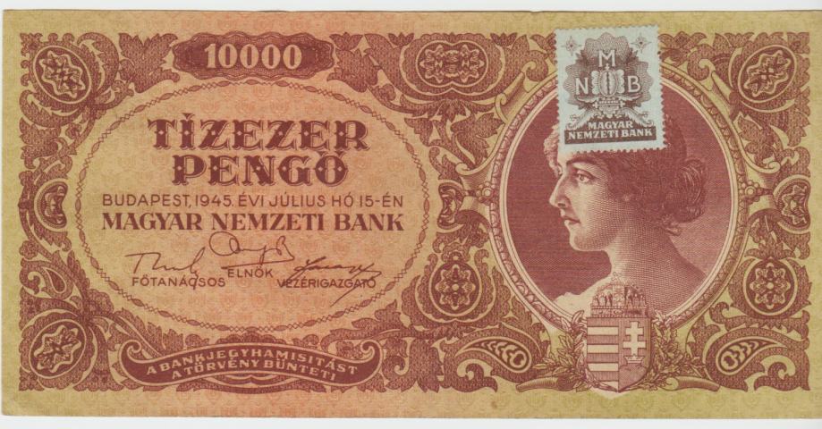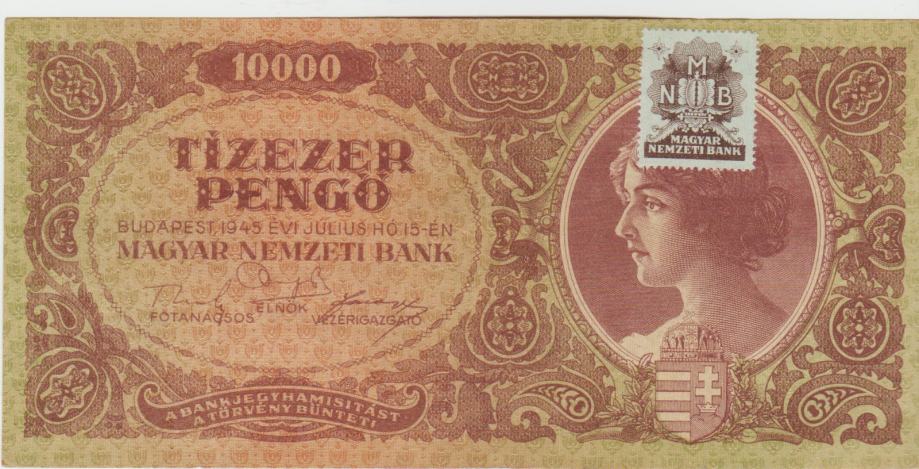 Prodam bankovec 10.000 PENGO P119b "Z ZNAMKO ( MADŽARSKA), 1945. aUNC kvaliteta - CENA JE ZA 1 BANKOVEC.