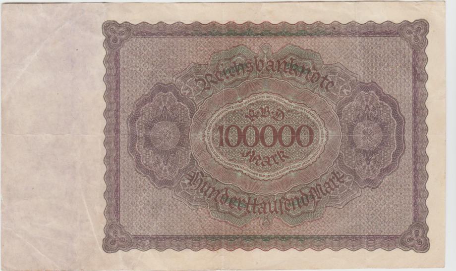 BANKOVEC 100000 MARK P-83b-8 št. (NEMŠKI REICH NEMČIJA) 1.2.1923.VF