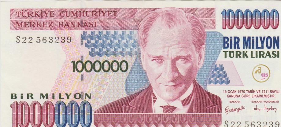 Prodam BANKOVEC 1.000.000 LIRASI P213a.1 (TURČIJA) 1999.XF++/aUNC kvaliteta
