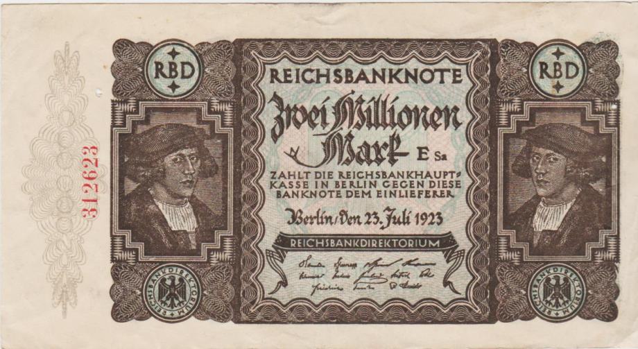 BANKOVEC 2 MILLIONEN 2000000 MARK P89a (NEMŠKI REICH NEMČIJA)1923.VF