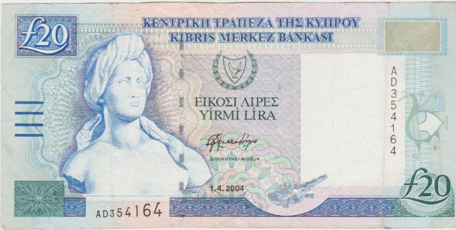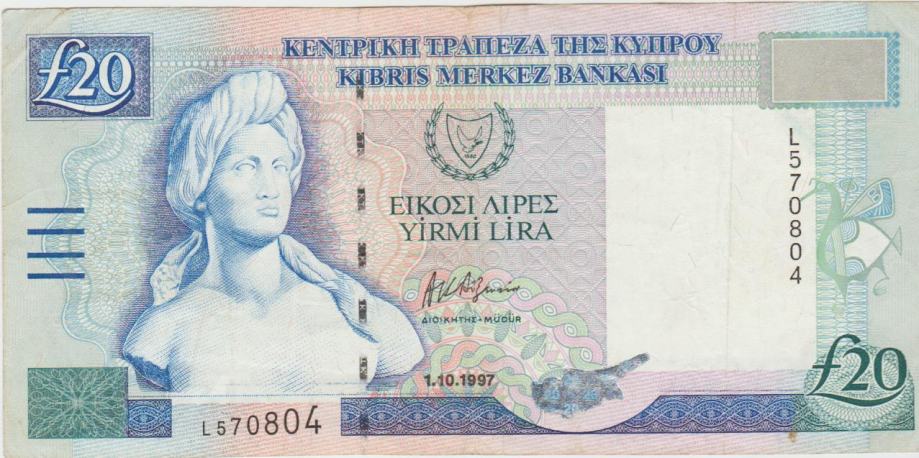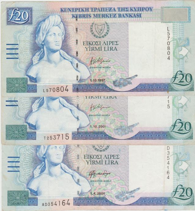 Prodam zelo redek bankovec 20 POUNDS P63a-1997,, IN 20 POUNDS P63c-2004 (CIPER CYPRUS) VF.CENA JE ZA 1 BANKOVEC