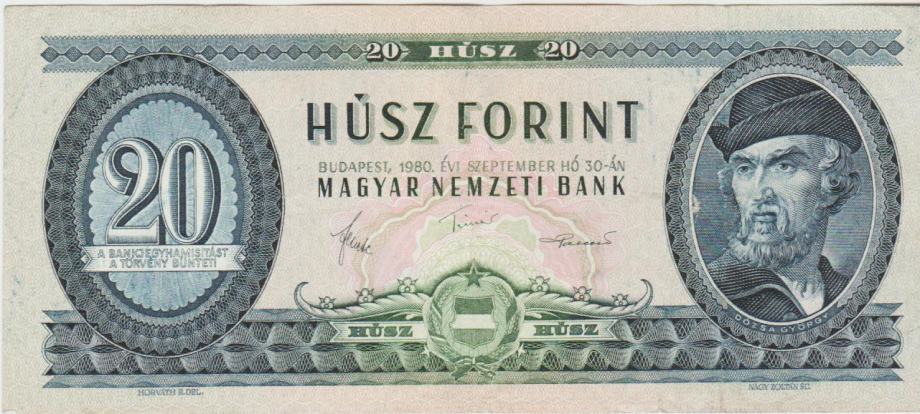 Prodam BANKOVEC 20 FORINT P169g (MADŽARSKA) 1980.XF/XF++ kvaliteta,CENA JE ZA 1 BANKOVEC.
