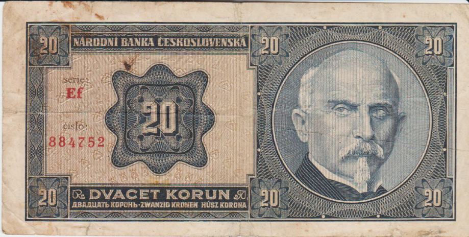 Prodam ZELO REDEK BANKOVEC 20 KORUN P21a (ČEŠKA, ČEHOSLOVAŠKA) 1926.VF kvalitete.