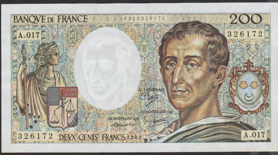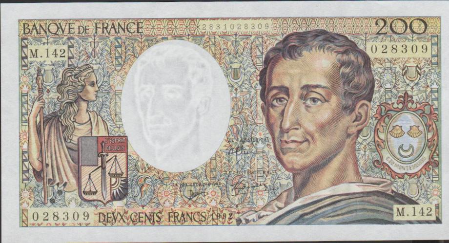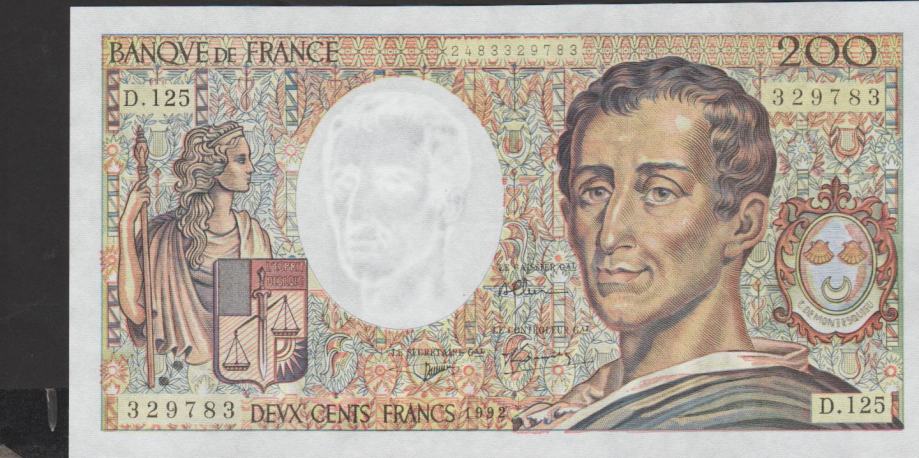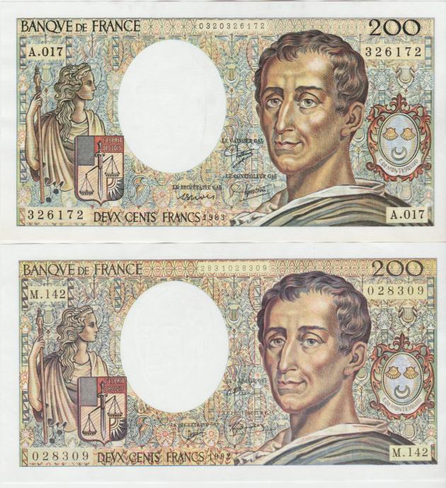 BANKOVEC 200-1983,1992 FRANCS P155a.3,P155e"MONTESQUIEU"(FRANCIJA)aUNC