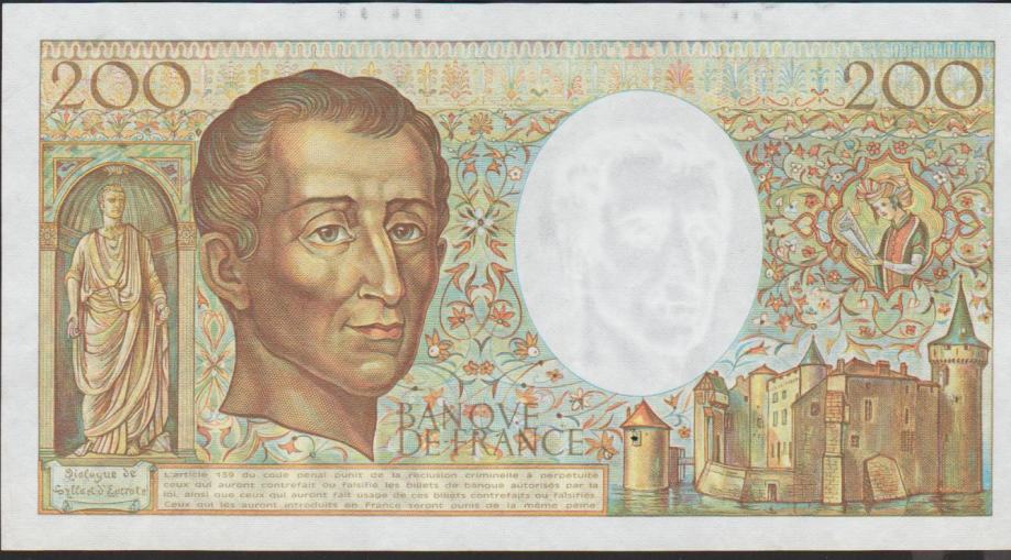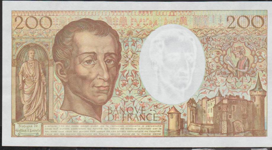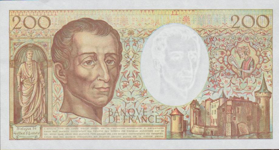 PRODAM BANKOVEC 200 FRANCS P155a.3-1983 IN 200 FRANCS P155e-1992 "MONTESQUIEU" (FRANCIJA) 1992.aUNC, kvaliteta.CENA JE ZA 1 BANKOVEC.
