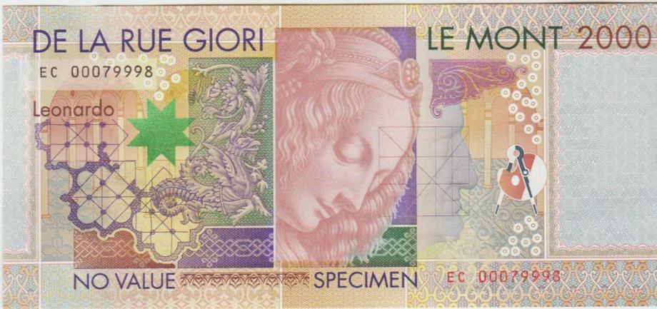 Prodam bankovec 2000 LE MOND "LEONARDO DE VINCI" SPECIMEN (ITALIJA) UNC KVALITETA.