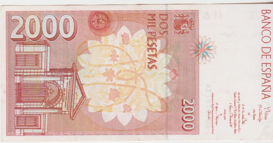 Prodam bankovec 2000 PESETAS P162a.3 (ŠPANIJA) 24.4.1992.VF/XF kvaliteta.