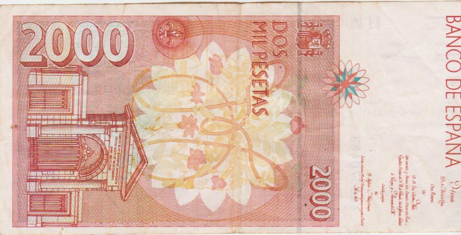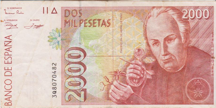 Prodam REDEK BANKOVEC 2000 PESETAS P164a.3 "št.črka +7št." (ŠPANIJA) 1992.VF kvaliteta.