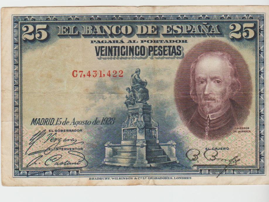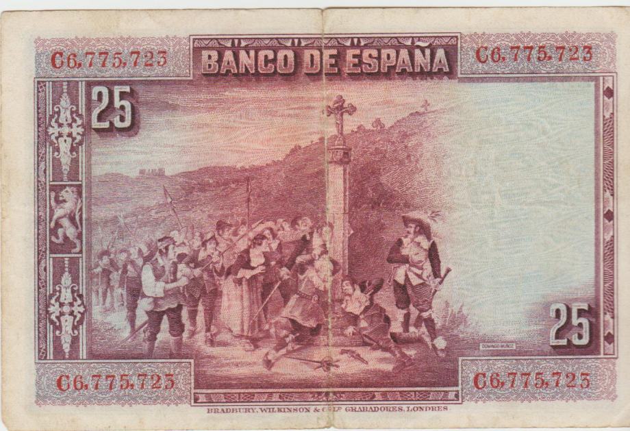 Prodam BANKOVEC 25 PESETAS P74b (ŠPANIJA) 1928.VF/XF kvaliteta.CENA JE ZA 1 BANKOVEC.