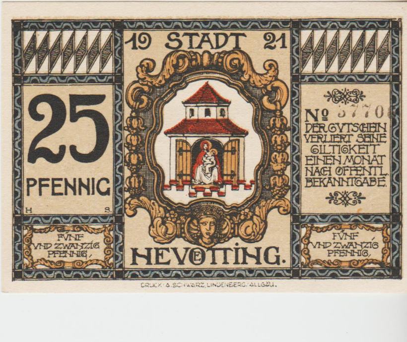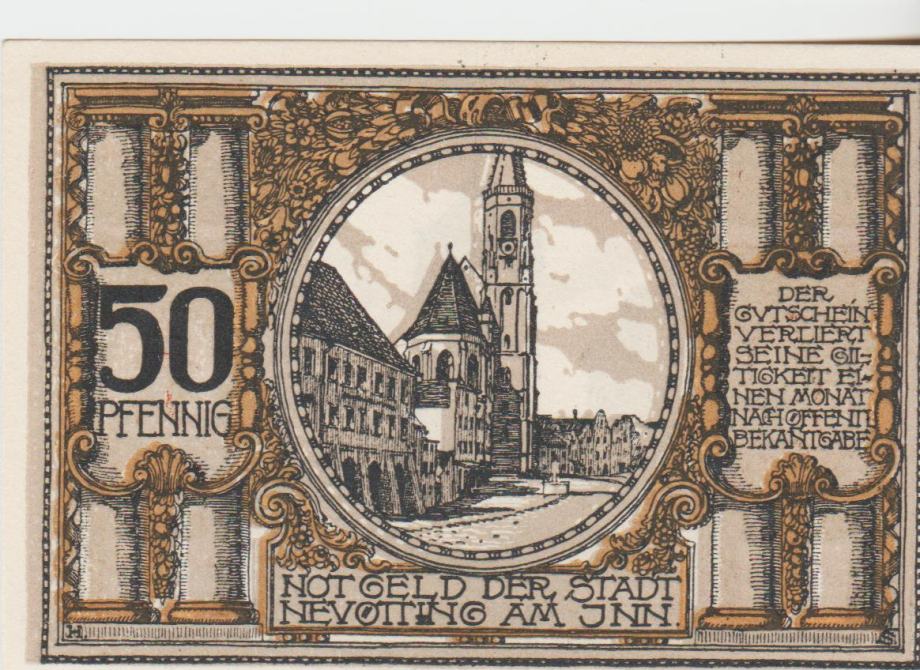 BANKOVEC 25,50 pfennige "Neuötting" ( NEMŠKI RAICH NEMČIJA) 1921.UNC