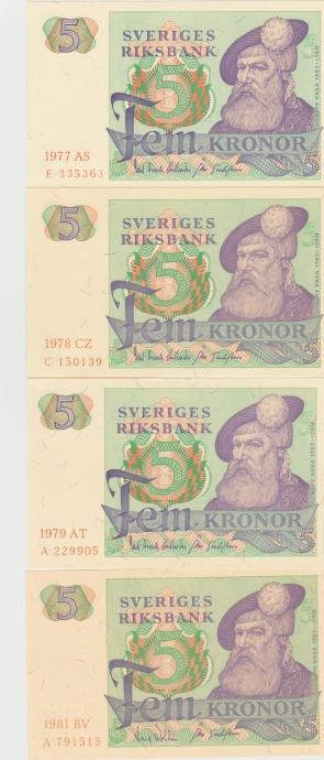 Prodam BANKOVEC 5 KRONOR P51d.1-1977,, 5 KRONOR P51d.2 -1978,, 5 KRONOR P51d.3-1979 in 5 KRONOR P51d.4-1981(ŠVEDSKA) .UNC CENA JE ZA 1 BANKOVEC.