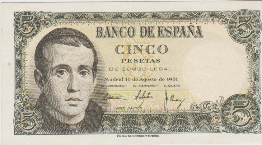 Prodam REDEK bankovec 5 PESETAS (ŠPANIJA) 1951. aUNC/UNC kvaliteta.