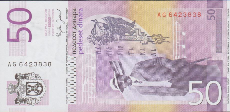 Prodam bankovec 50 DINARA P40a 2005 -AG,, 50 DINARA P56a 2011 -AC IN 50 DINARA P56b 2014 -AB,AK (SRBIJA) UNC, kvaliteta.!
